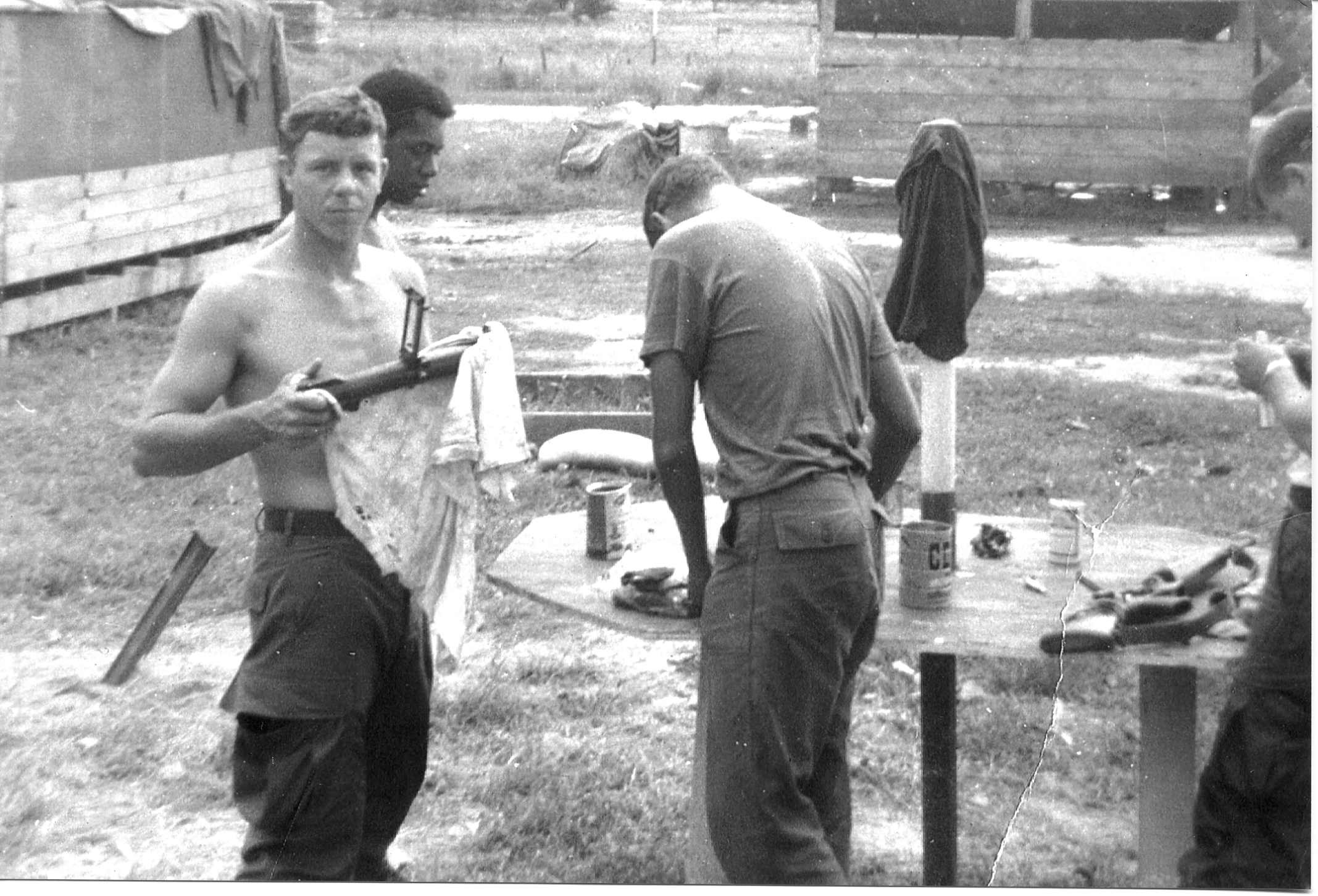 ANSWER: There is a picture of Sgt. Dubose (KIA 1-2-68) and two other men cleaning weapons at the rear of a tent. The tallest guy is
