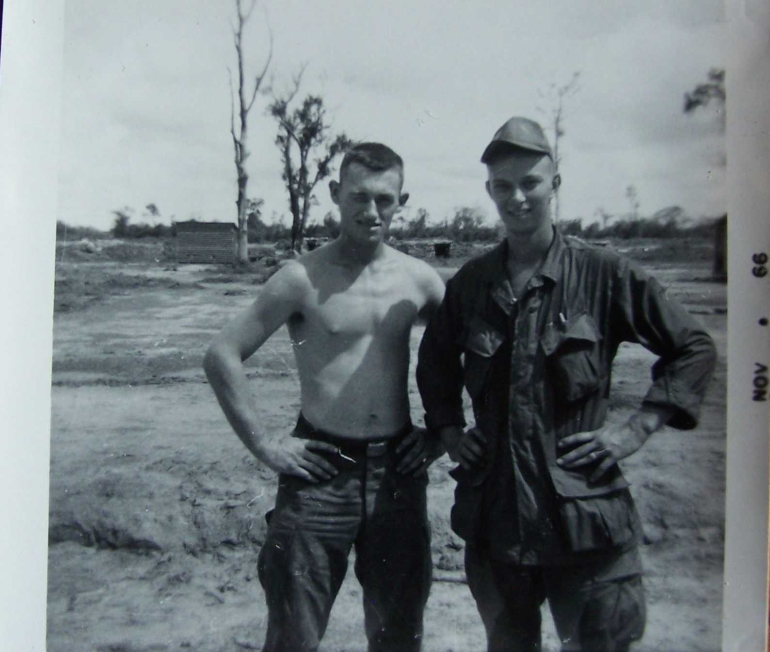 Photo on right - Left to Right: Pfc John Edwards, Sgt. Dan Eddinger, Chaplain's Assistants. Memorial Chapel, Dau Tieng, 1967.